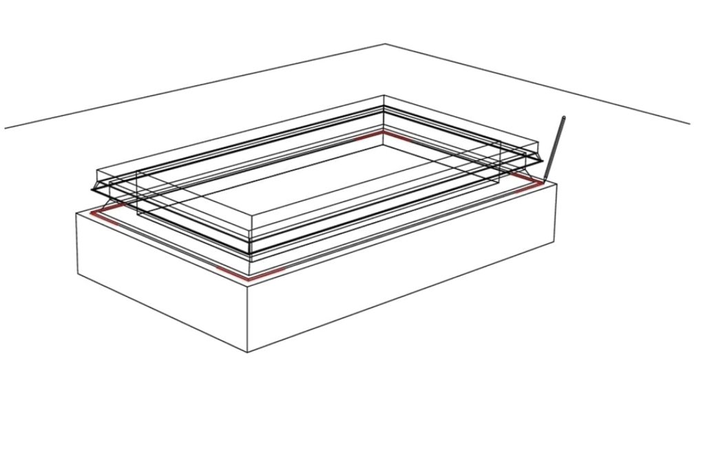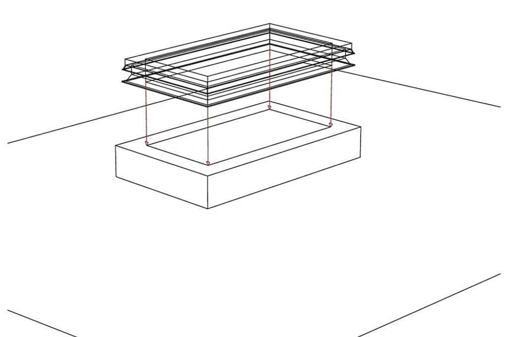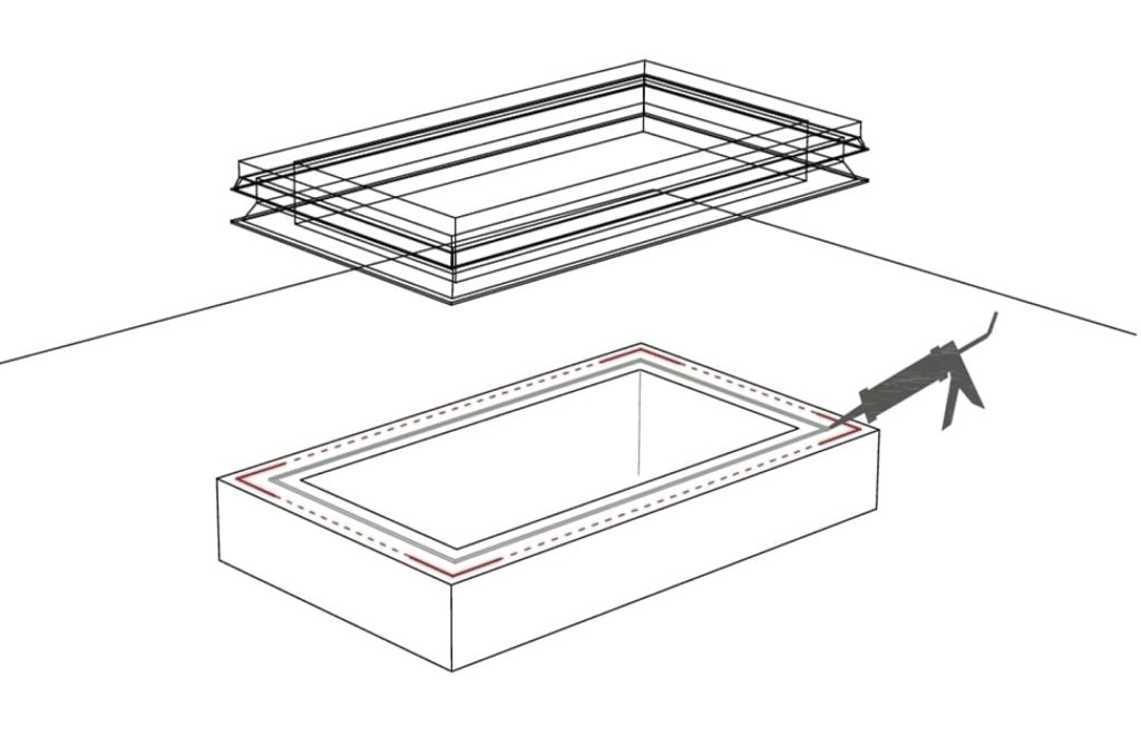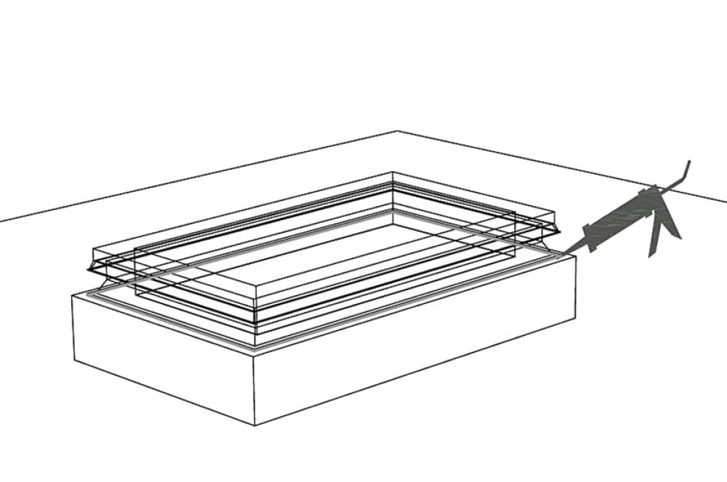 Colocamos la claraboya sobre las marcas , presionamos ligeramente contra el suelo y para terminar sellamos el perimetro exterior para una perfecta estanqueidad.