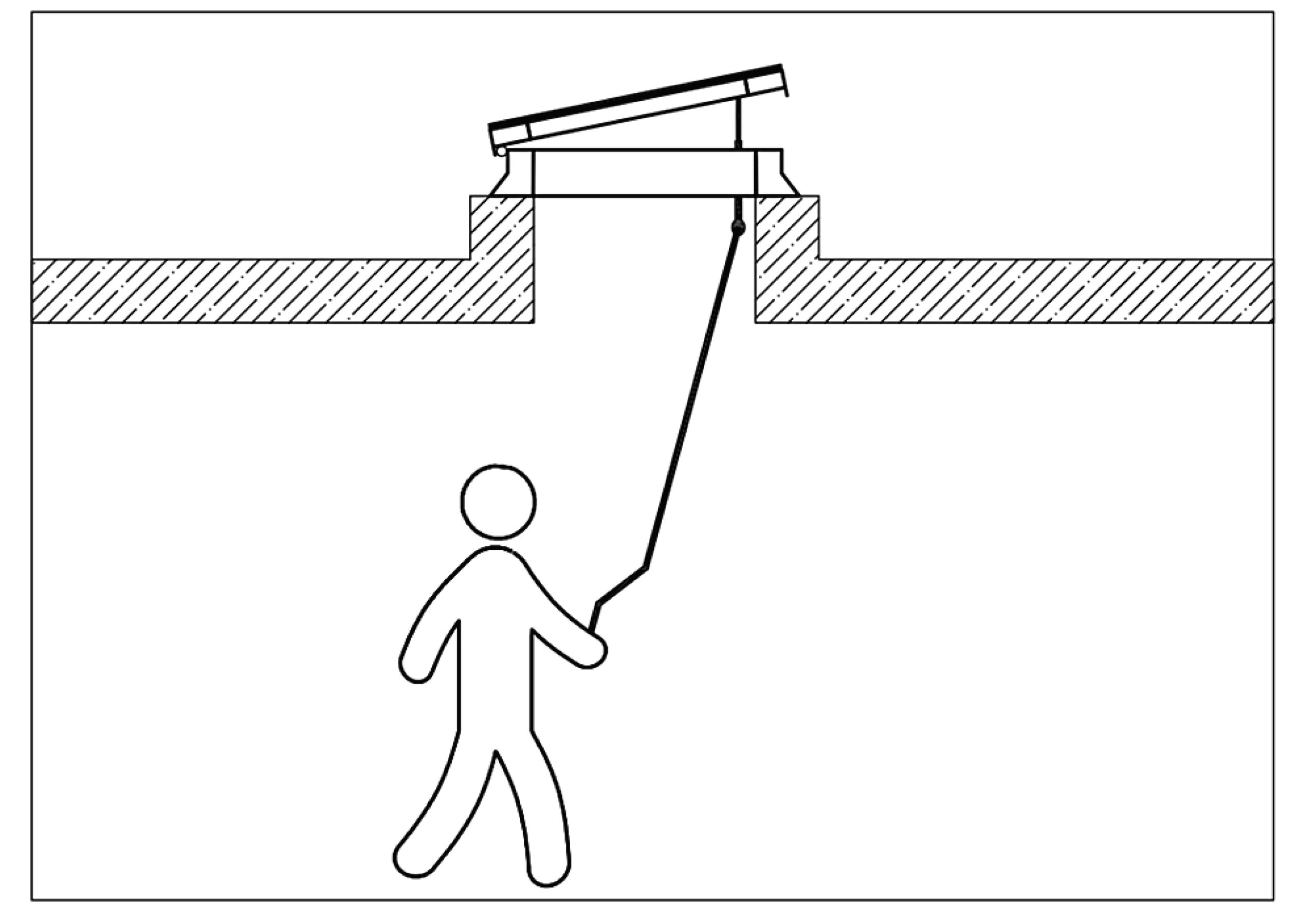 Claraboya con sistema de apertura manual.