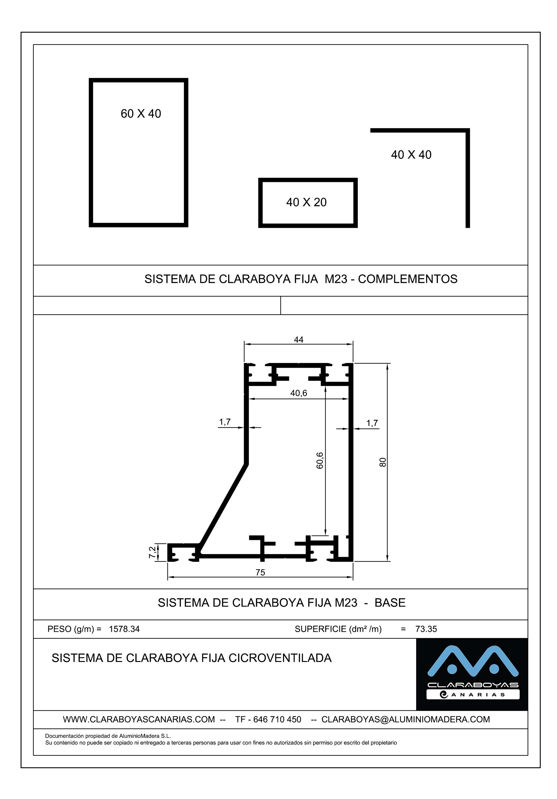 60 x 40 mm para claraboyas de gran tamaño.